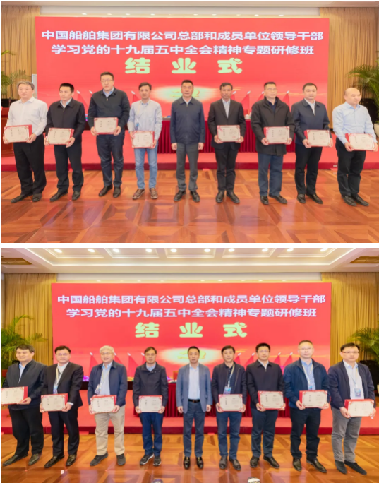 4月23日,中國(guó)船舶集團(tuán)有限公司總部和成員單位領(lǐng)導(dǎo)干部學(xué)習(xí)黨的十九屆五中全會(huì)精神和黨史學(xué)習(xí)教育專題研修班圓滿結(jié)業(yè)。培訓(xùn)期間,中國(guó)船舶集團(tuán)黨組書記、董事長(zhǎng)雷凡培以《深入貫徹落實(shí)習(xí)近平總書記重要指示批示精神 努力加快建設(shè)世界一流船舶集團(tuán)》為題給全體學(xué)員們講授了第一課,中國(guó)船舶集團(tuán)黨組副書記、總經(jīng)理?xiàng)罱鸪桑h組成員、副總經(jīng)理孫偉、盛紀(jì)綱以及相關(guān)部門負(fù)責(zé)人先后出席各期結(jié)業(yè)式并聽(tīng)取了學(xué)員們的學(xué)習(xí)匯報(bào)。