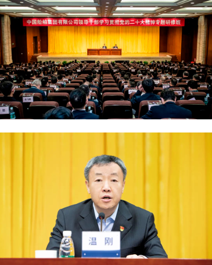 3月6日,中國船舶集團有限公司領導干部學習貫徹黨的二十大精神專題研修班正式開班。中國船舶集團黨組書記、董事長溫剛出席開班式并為全體學員作了題為《全面學習全面把握全面落實黨的二十大精神,團結奮斗加快建設世界一流船舶集團》的專題講座。集團公司黨組副書記、董事、黨校校長杜剛主持開班式。