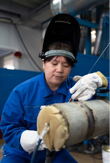 至今,朱瑞霞已經(jīng)參與了“遠(yuǎn)望”系列船、“雪龍2”號、南昌艦等國家重點(diǎn)項(xiàng)目的焊接工作。她說,當(dāng)時(shí)有人高度評價(jià)稱:“你焊的管子可以免檢。”但壓力也隨之而來,“我當(dāng)時(shí)就想,船一出海就是半年,我的焊接要是出問題,就是人命關(guān)天。”正是因?yàn)檫@種“軸”,朱瑞霞先后攻克了鎳銅管焊接變形、HDR不銹鋼焊接、鈦合金焊接等一系列高難度問題。她主導(dǎo)研發(fā)了十余項(xiàng)焊接專利技術(shù),攻克了薄壁管道焊接難題,還創(chuàng)新研制了特有的工裝,獲得外國專家的認(rèn)可和推廣應(yīng)用。