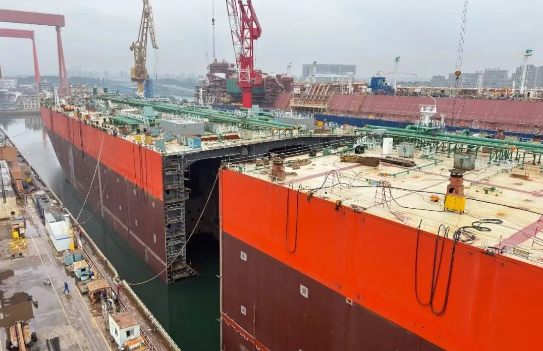 10月10日,大連造船為CIDO SHIPPING (H.K.) CO., LTD建造的30萬噸VLCC130號船順利完成艏半段出塢及兩大段對接節(jié)點。此次作業(yè)較年度計劃提前20天完成,有效壓縮了施工周期,顯著提升了作業(yè)效率。
