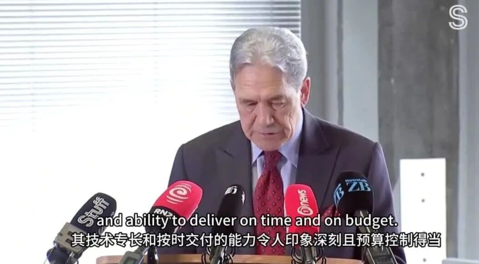 新西蘭外交部兼鐵道部部長Winston Peters(溫斯頓·彼得斯)、新西蘭FHL公司董事長Chris McKenzie(克里斯·麥肯齊)、中船集團副總經(jīng)理彭原璞出席簽約儀式并致辭,新西蘭駐華大使Jonathan Austin(喬·文博)、駐廣州總領(lǐng)事Michael Zhang(張典)等出席簽約儀式。