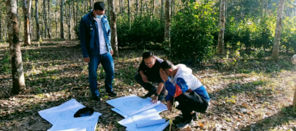 ▲馬翔(中)為集團(tuán)定點(diǎn)幫扶項(xiàng)目現(xiàn)場(chǎng)選址