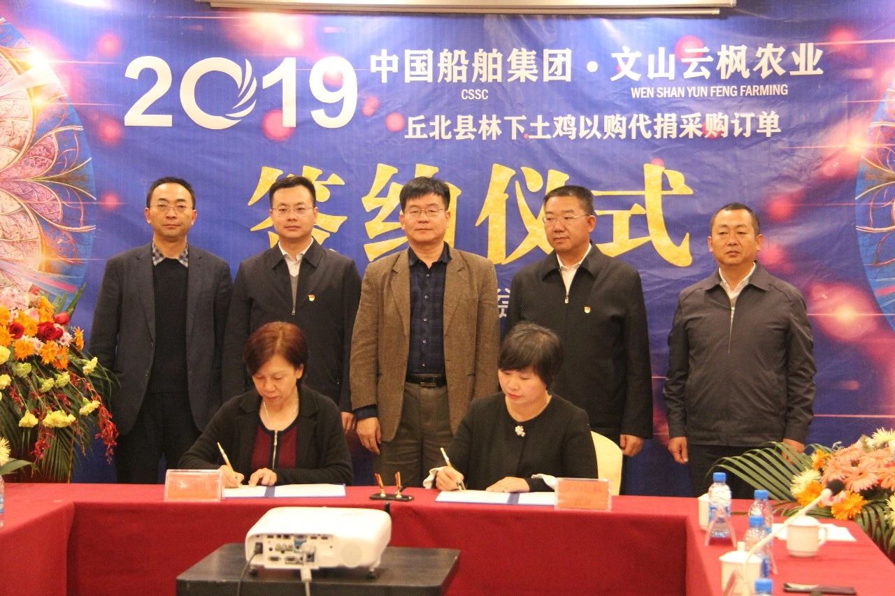 ????12月22日,中國船舶集團(tuán)有限公司定點(diǎn)扶貧縣——云南省文山州丘北縣舉行中國船舶集團(tuán)—文山云楓農(nóng)業(yè)丘北縣林下養(yǎng)雞以購代捐采購訂單簽約儀式。中國船舶集團(tuán)所屬中船物貿(mào)公司與云南文山云楓農(nóng)業(yè)簽訂了價(jià)值約1000余萬元的10萬只土雞“以購代捐”采購訂單。中國船舶集團(tuán)在丘北縣實(shí)施的10萬只土雞“以購代捐”項(xiàng)目,歷時(shí)7個(gè)月,進(jìn)入全面收尾階段。