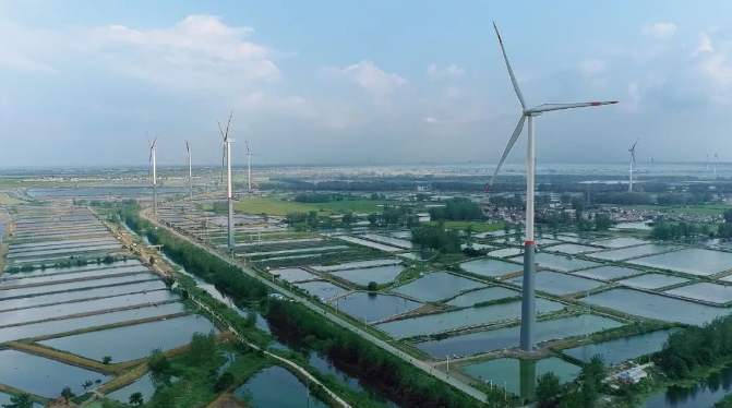 在華北平原的田埂上,一臺(tái)臺(tái)由鋼混塔筒搭載的風(fēng)電機(jī)組不僅發(fā)出綠電,白色的大風(fēng)車(chē)還點(diǎn)綴其中,與農(nóng)田相映成趣,勾勒出一派鄉(xiāng)村美景,成為鄉(xiāng)村旅游的網(wǎng)紅打卡地。