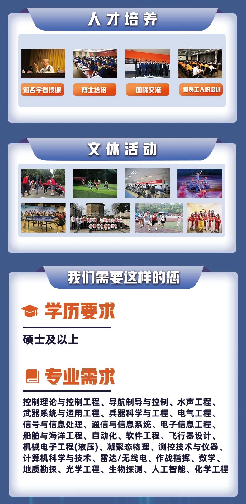 七二五研究所重視人才培養(yǎng),為新員工安排專業(yè)、管理和實(shí)踐導(dǎo)師,全方位關(guān)注新員工成長,具有完善的人才職業(yè)發(fā)展通道,著力選拔和培養(yǎng)優(yōu)秀青年人才,促進(jìn)人才脫穎而出,激勵(lì)人才干事創(chuàng)業(yè),為人才成長提供卓越的事業(yè)發(fā)展平臺。